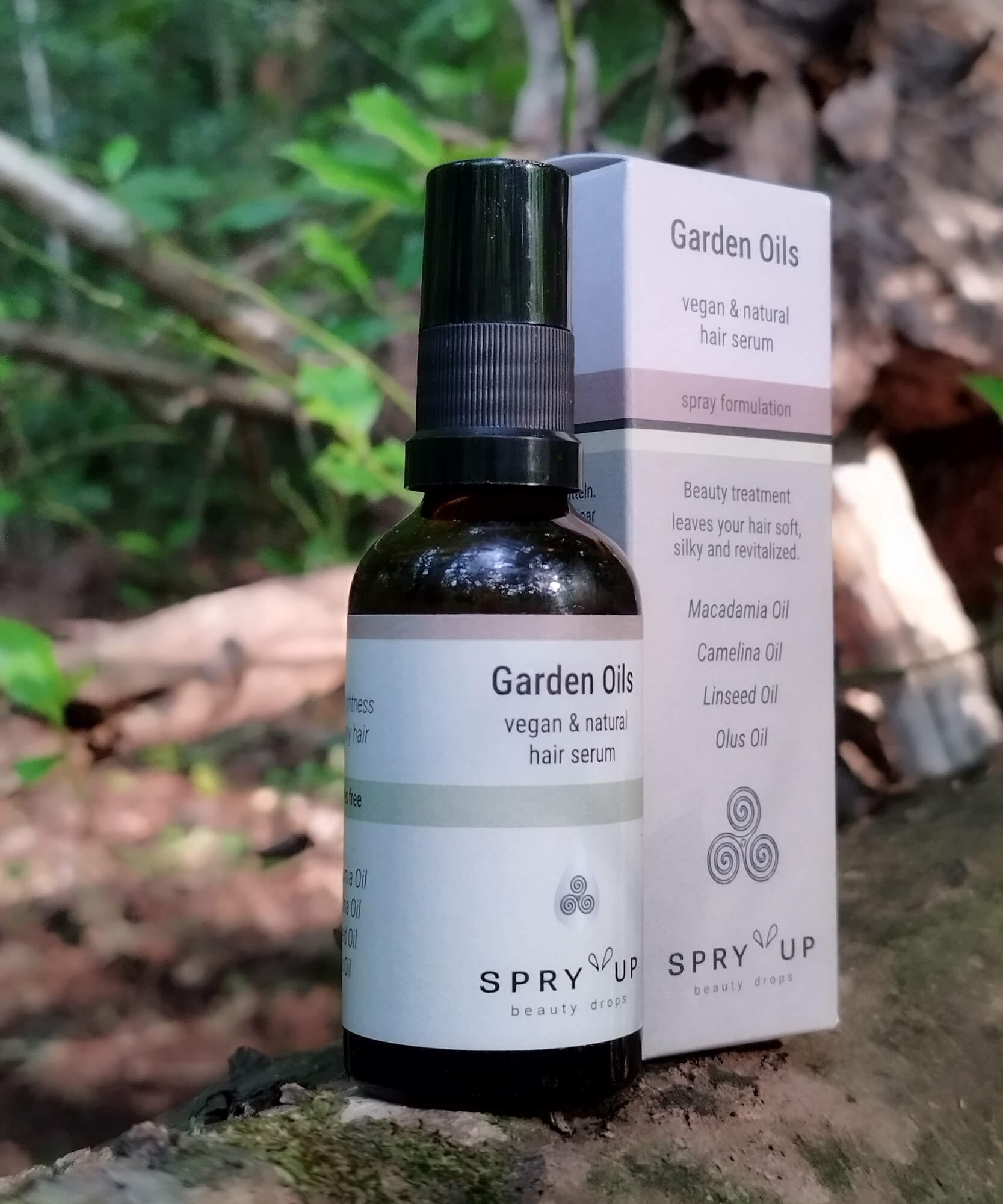 Garden oils – vegan & natural hair serum – spray formulation, formulated without silicones and mineral oils.